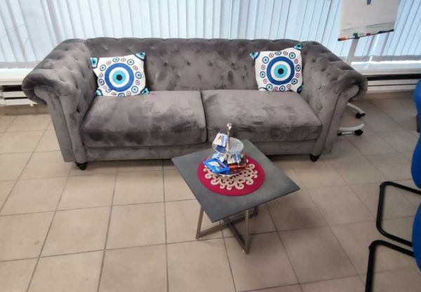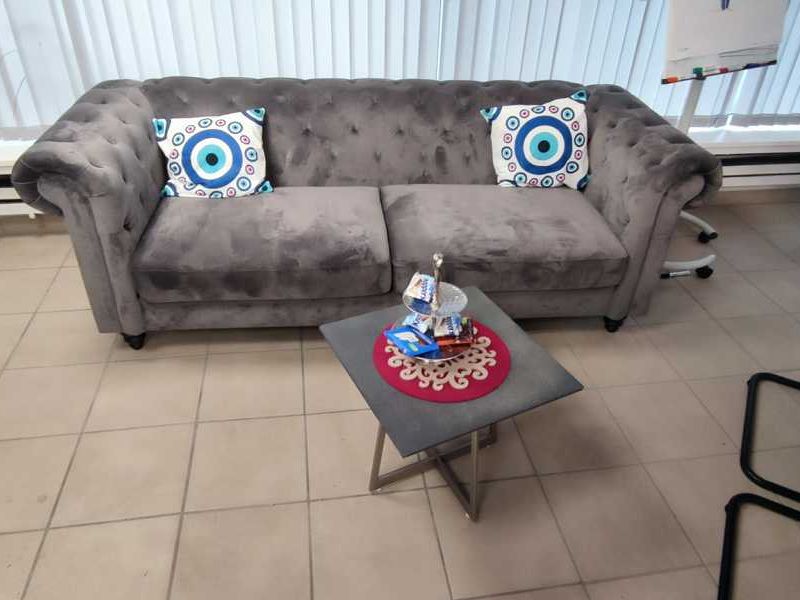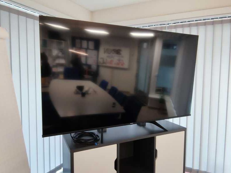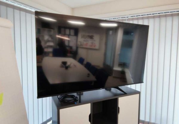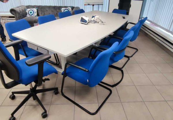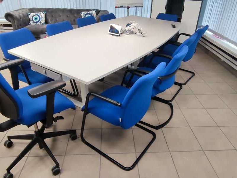 Besprechungstisch elektrisch höhenverstellbar, mit 10 Besucherstühlen