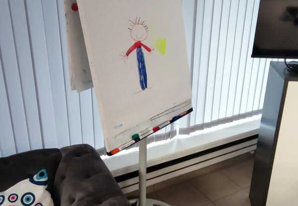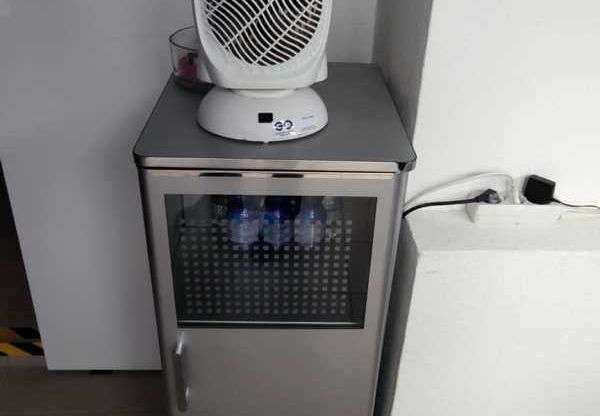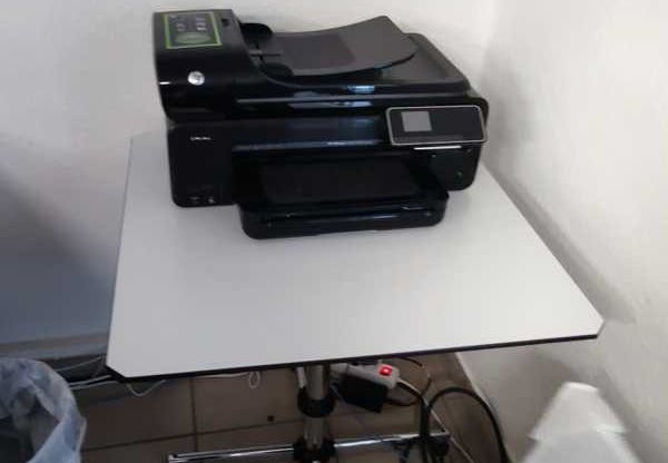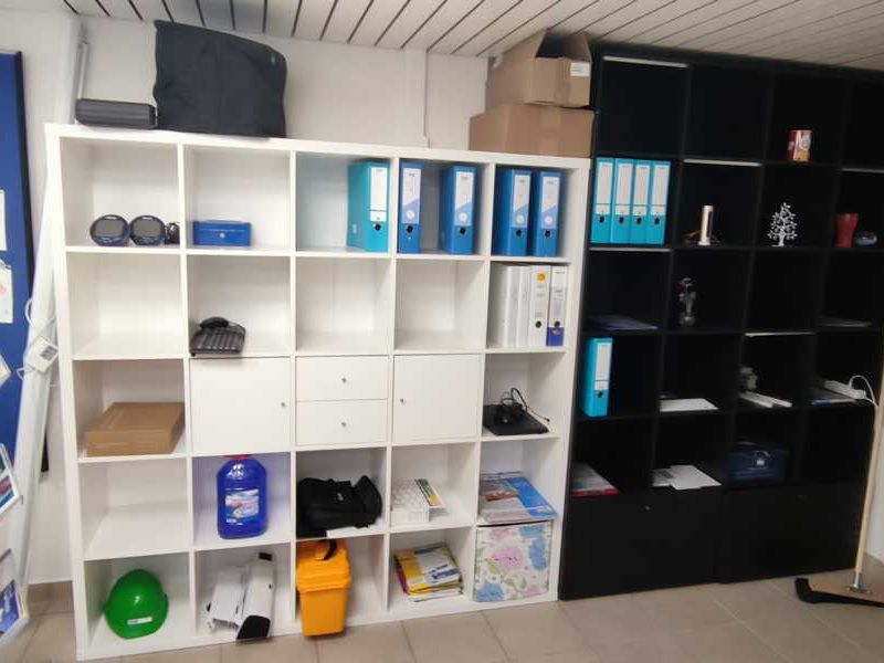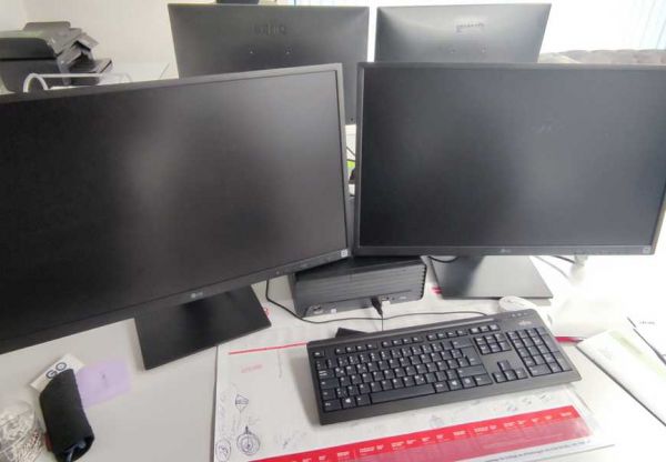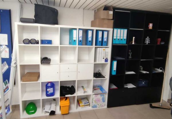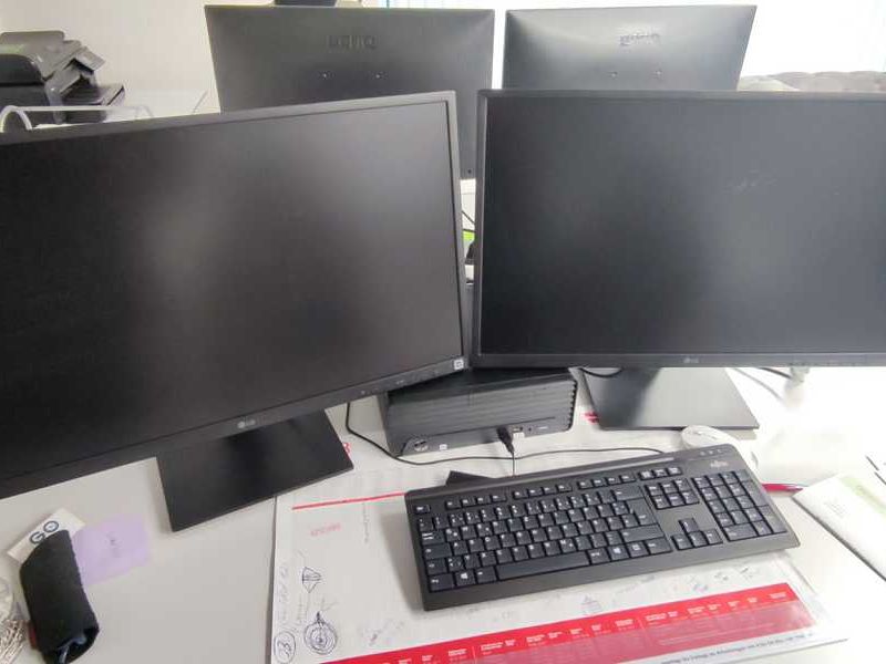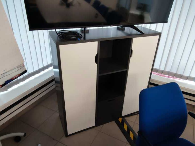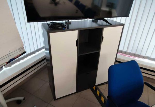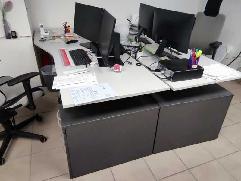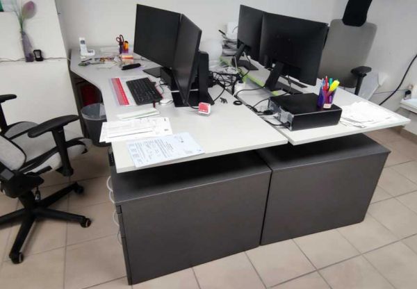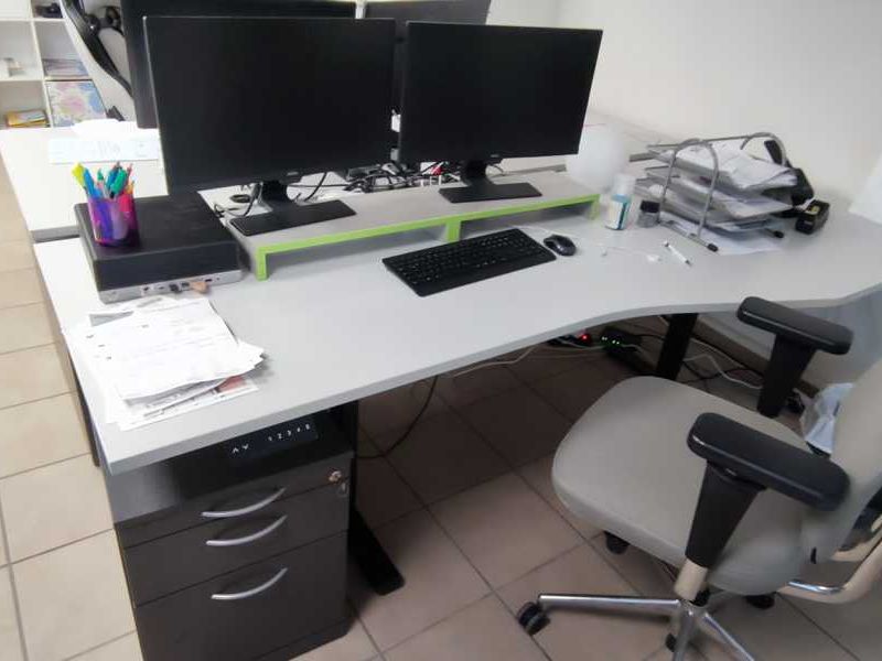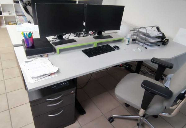 Schreibtisch elektrisch höhenverstellbar, mit Unterschrank und Bürodrehstuhl