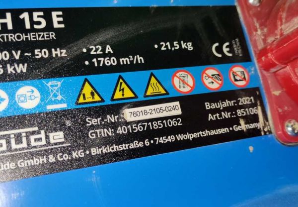 Elektro-Heizgerät GÜDE GH 15 E, BJ 2021